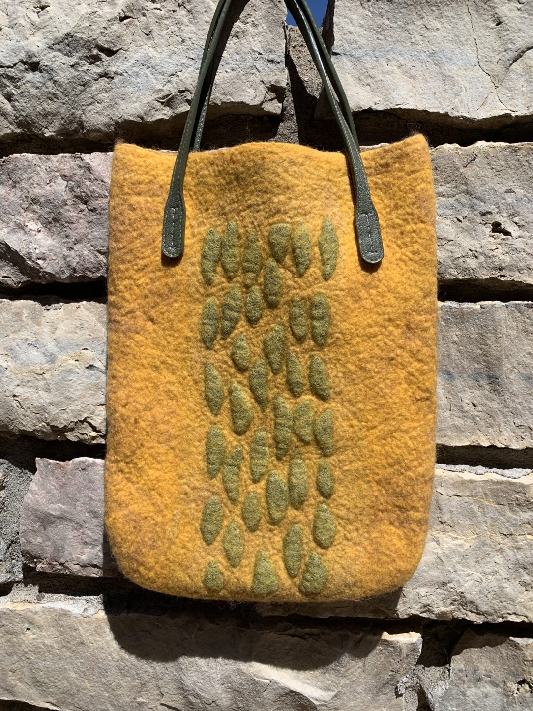 Felted handbag “Yellow Stones.” Perfect for a book or laptop.